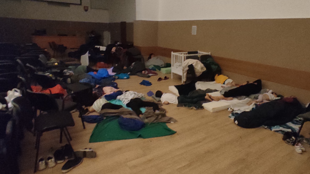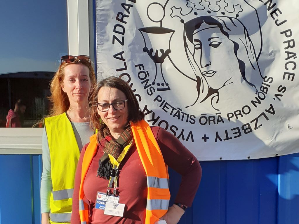 V piatok 6. októbra sme pripravili matrace a postarali sa o ďalšiu materiálnu podporu potrebnú na ubytovanie rodín. V skorých večerných hodinách členovia zásahovej jednotky mestskej polície v spolupráci s pracovníkmi sociálnoprávnej ochrany a sociálnej kurately začali dopravovať prvé rodiny. V tej dobe náš útulok bol asi jediným dôstojným a bezpečným miestom pre tieto rodiny v kritickej situácii v Bratislave. Do rána bolo v aule ubytovaných 30 ľudí, z toho okolo 20 detí, ostatní boli najmä ženy, ale aj muži – otcovia, prípadne najbližší rodinní príslušníci. Odvtedy máme každý deň približne rovnaký počet ubytovaných. Vysoká škola sv. Alžbety, ktorá okrem iných odborov pripravuje do praxe nových sociálnych pracovníkov, tak napĺňa aj praktickú ideu sociálnej i charitatívnej práce: byť tam, kde je núdza, byť tu pre tých, ktorí potrebujú pomoc.