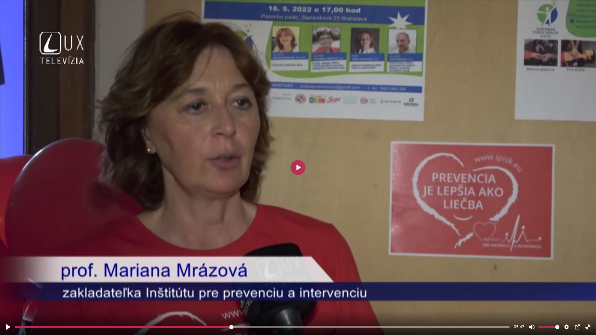 prof. Mariana Mrázová, zakladateľka Inštitútu pre prevenciu a intervenciu v spolupráci s VŠ zdarv. a soc. práce sv. Alžbety zorganizovali minikonferenciu - Prevencia je lepšia ako liečba (začiatok cca 6.min.)