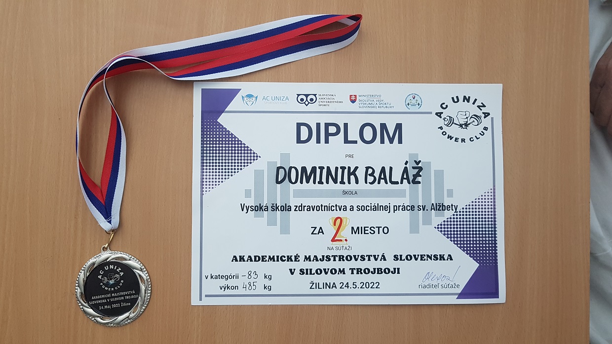 Nášmu študentovi Dominikovi Balážovi zo študijného odboru Zubná technika, sa podarilo vybojovať druhé miesto v Akademických majstrovstvách Slovenska v silovom trojboji. Srdečne gratulujeme!